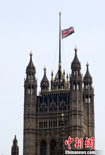 英國(guó)議會(huì)大廈降半旗對(duì)撒切爾夫人表示哀悼