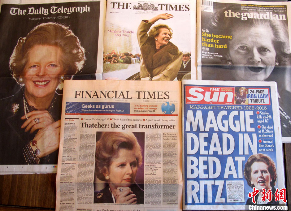 全球媒體關(guān)注撒切爾夫人去世消息