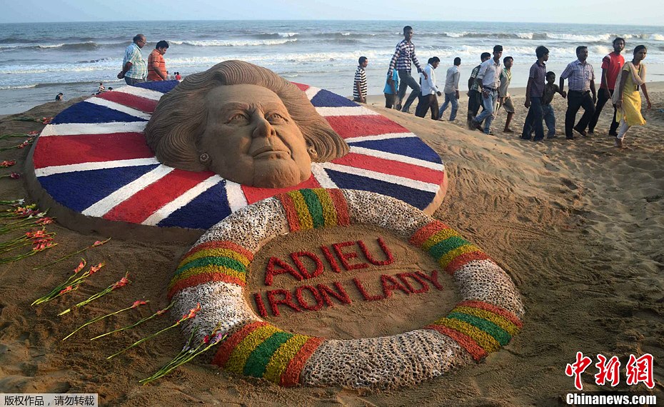 印度民眾海灘創(chuàng)作撒切爾夫人沙雕