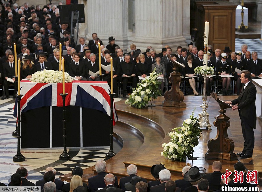 英國(guó)首相卡梅倫為撒切爾夫人致悼詞