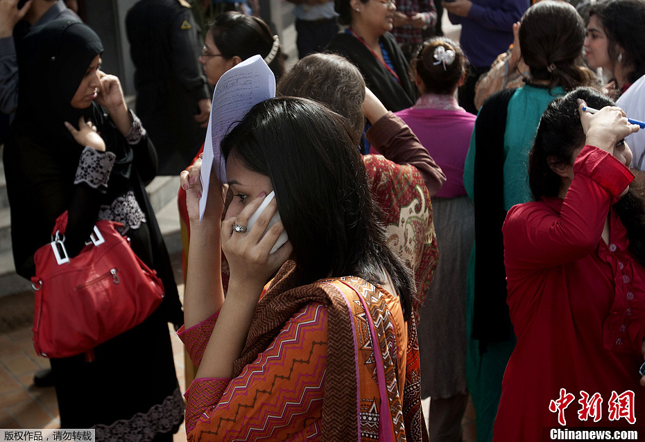 巴基斯坦卡拉奇的工作人員從樓宇中撤離