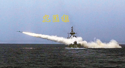 伊朗稱新測試的導彈世上獨有,射程達300公里。圖為伊朗海軍2006年8月在阿曼海進行軍演時試射導彈。(圖:香港《文匯報》)
