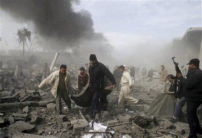 以色列發(fā)動的空襲行動摧毀了數(shù)個哈馬斯警察的院落,死傷者倒在地上。這是巴勒斯坦人20多年來所遭遇的最血腥的一天。
