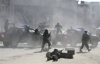 另據新華網報道,有目擊者稱,恐怖分子一度占領了司法部大樓,并用自動步槍瘋狂掃射。目前,警方已奪回對大樓的控制權,并打死至少4名恐怖分子。此外,在阿富汗安全情報部附近,安全人員也打死2名準備發(fā)動自殺襲擊的恐怖分子?植婪肿赢斕爝向位于喀布爾北部的一座政府建筑發(fā)動了襲擊。