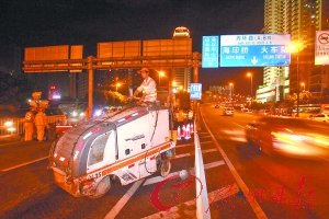 本報(bào)訊(記者倪明、王鶴)從昨日22時(shí)開始,內(nèi)環(huán)路南田路入口至江灣橋南出口,黃埔大道放射線出口段兩處路段約4公里全封閉施工,施工單位將趁著周末和單雙號(hào)限行,交通量相對(duì)較少的機(jī)會(huì)24小時(shí)刨鋪瀝青,爭(zhēng)取在下周一白天重新開放封閉路段。昨晚10時(shí)07分,記者驅(qū)車前往南田路入口,只見電子提示牌上已閃現(xiàn)封閉通知,沿路可見懸掛的車輛繞行指引提示牌。在現(xiàn)場(chǎng)交警的指揮下,交通秩序尚好。交警人士透露,大修啟動(dòng)后,馬上迎來(lái)單雙號(hào)演練,對(duì)交通影響不大,但單雙號(hào)演練結(jié)束后,廣州交通將面臨考驗(yàn)。