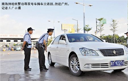 記者昨日在五丫口收費站看到,7時一到,幾名交警和協(xié)管員便行動起來,站在路旁對雙號車進行“攔截”。僅僅在一個小時內(nèi),南海桂城交警中隊的梁隊長和隊友便勸返了近百名雙號車車主。梁隊長稱,他們在此只是配合廣州“限行”,不會對車主罰款,告誡車主廣州實施“限行”,不要進入廣州,可在過橋處的掉頭路口返回佛山。