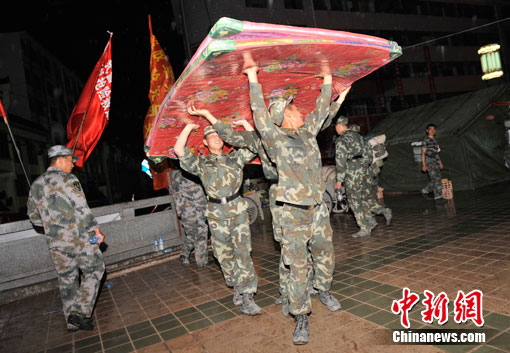 中新網(wǎng)舟曲8月11日電(記者 唐偉杰 劉賢)晚上8點(diǎn)半左右,在數(shù)十分鐘的密集電閃雷鳴后,舟曲災(zāi)區(qū)開始降雨,目前雨勢較小。據(jù)氣象部門預(yù)報,今晚舟曲雷陣雨轉(zhuǎn)中雨,明天預(yù)計(jì)繼續(xù)有中雨。