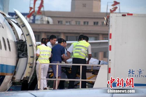 中新網(wǎng)北京8月28日電(張正尤) 8月27日18時15分,10名伊春“8•24”空難傷員飛抵首都國際機(jī)場。被在此等候的北京急救中心12輛急救車火速轉(zhuǎn)運到北京大學(xué)第三醫(yī)院、北京積水潭醫(yī)院救治。每家醫(yī)院安排收治5名傷員,傷員隨行家屬來京照顧傷員。