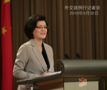 中新網(wǎng)9月30日電 據(jù)中國外交部網(wǎng)站消息,2010年9月30日,外交部發(fā)言人姜瑜舉行例行記者會,就中日關(guān)系、中美經(jīng)貿(mào)關(guān)系等回答記者提問。答問全文如下。