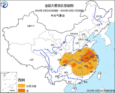 中新網(wǎng)10月16日電 中央氣象臺(tái)今晨6時(shí)繼續(xù)發(fā)布大霧藍(lán)色預(yù)警: