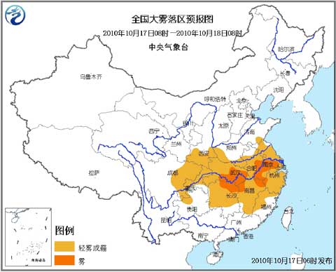 中新網(wǎng)10月17日電 據(jù)中央氣象臺(tái)消息,中央氣象臺(tái)10月17日06時(shí)繼續(xù)發(fā)布大霧藍(lán)色預(yù)警:預(yù)計(jì)今天(17日)早晨到上午,黃淮南部、陜西南部、江淮、江漢、四川盆地大部、重慶大部、江南大部、福建中西部等地將有輕霧或霾。