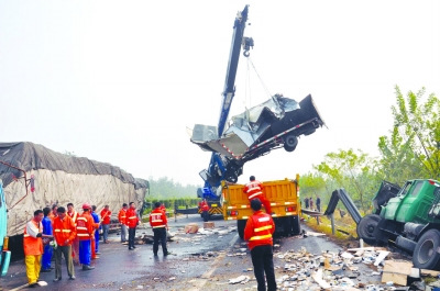 昨天上午8時(shí)許,受大霧影響,鹽徐高速公路建湖境內(nèi)發(fā)生連環(huán)追尾事故,15輛車自西向東撞到一起。記者獲悉,事故現(xiàn)場(chǎng)造成一人死亡,多人受傷。鹽徐高速也一度受到嚴(yán)重影響。