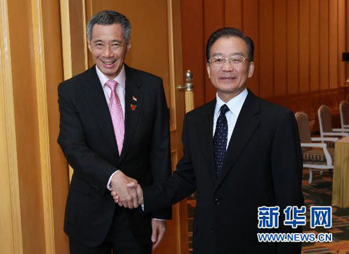 國務(wù)院總理溫家寶29日在河內(nèi)會見了新加坡總理李顯龍。