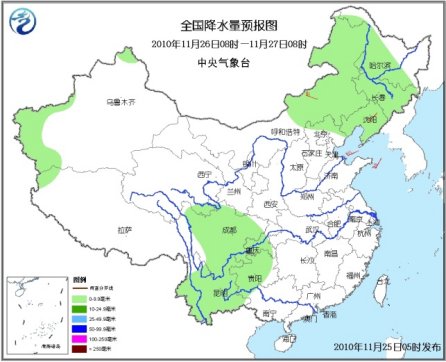 26日08時(shí)至27日08時(shí),新疆北部和西南部局部、內(nèi)蒙古中東部、東北大部、川西高原北部等地有小到中雪(雨)或雨夾雪;四川大部、云南、重慶西部、貴州大部等地有小雨或陣雨。內(nèi)蒙古中東部、東北、華北北部等地有4~5級風(fēng)。。