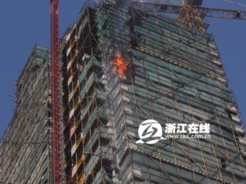 記者從寧波相關(guān)部門了解到,10日上午8時48分,在寧海學(xué)勉路的某在建高樓的24層發(fā)生火災(zāi)。大樓的東南角處火勢較旺,不斷向南面的腳手架上蔓延。火災(zāi)發(fā)生后,消防人員立刻趕到現(xiàn)場施救,采取垂直鋪設(shè)水帶的方法進行內(nèi)攻,與此同時,16米高噴消防車對起火層下層進行冷卻,以防止火勢蔓延。30分鐘后,火勢得到控制。