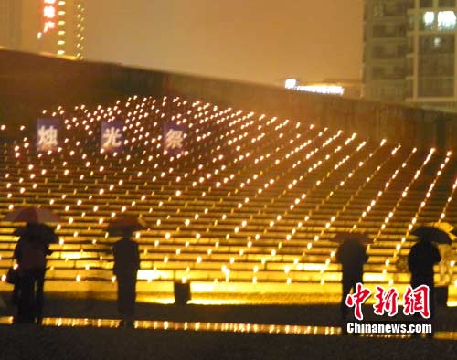 中新網(wǎng)南京12月12日電 (朱曉穎 申冉 孫翔鳴)“我們共風(fēng)雨,我們共追求,我們珍存同一樣的愛,無(wú)論你我可曾相識(shí),無(wú)論在眼前在天邊,真心的為你祝愿……”12日晚間,在侵華日軍南京大屠殺遇難同胞紀(jì)念館集會(huì)廣場(chǎng)上,南京和平鴿藝術(shù)團(tuán)的孩子們的歌聲回響其間,3000支紅燭點(diǎn)亮,悼念30萬(wàn)遇難同胞。