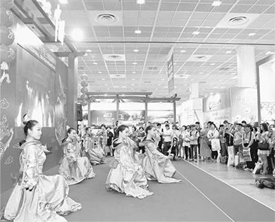 中韓兩國(guó)一衣帶水,文化交往源遠(yuǎn)流長(zhǎng)。圖為不久前在首爾舉行的第二十九屆韓國(guó)國(guó)際旅游展上,韓國(guó)參觀者觀看中國(guó)展臺(tái)的舞蹈表演。