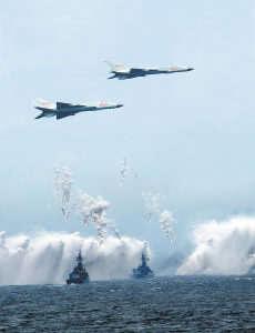 鎖定目標(biāo)!發(fā)射!茫茫大洋上,雙機編隊向“敵”機發(fā)起猛烈的鉗形攻擊。瞬間,兩架“敵”機凌空解體。