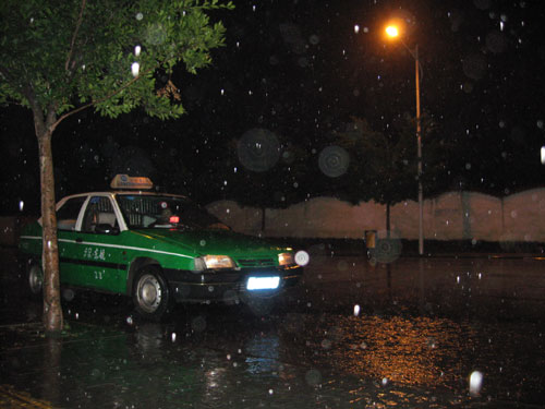 今天凌晨,記者約在3時起床上網(wǎng)查閱嫦娥一號資料。4時5分,忽聽窗外聲音異常,探身望去,果然看到最不希望看到的場景:昏暗的燈光下,雨絲如細線般飄落,沒有三四分鐘便成為如注的暴雨。