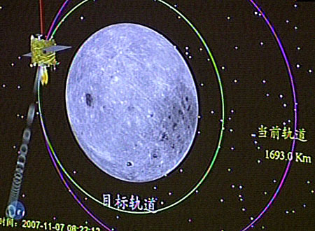 中新網(wǎng)11月7日電 繼昨天成功進(jìn)行第二次近月制動(dòng)后,中國“嫦娥一號(hào)”繞月探測衛(wèi)星今天上午8時(shí)24分又實(shí)施了第三次近月制動(dòng)。