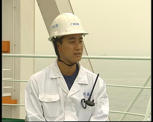 李小萌:這里是“華天龍”駕駛艙外的甲板上,我身后這個(gè)寫著“華天龍”三個(gè)字的大家伙就是有著四千噸起重能力的華天龍的主吊臂,現(xiàn)在“南海一號(hào)”就在它的掌控之中,它被人玩笑地稱作是中國(guó)海上姚明。現(xiàn)在我就請(qǐng)到了“南海一號(hào)”打撈項(xiàng)目的副總指揮王仁義,還有潛水隊(duì)長(zhǎng)鐘榮興,你們兩位在工作當(dāng)中這么忙接受我們的采訪,很感謝。但現(xiàn)在應(yīng)該是你們心情比較輕松的時(shí)候吧?