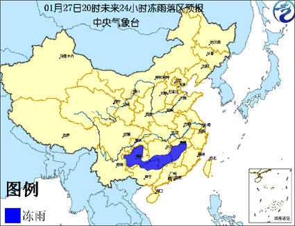 另外,貴州大部、湖南南部、江西中部、廣西北部等地的部分地區(qū)有凍雨。