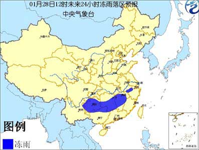 另外,貴州大部、湖南中南部、江西中北部、廣西北部、安徽南部、浙江西北部等地的部分地區(qū)有凍雨。