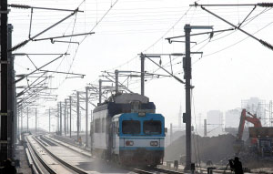按照計劃,京津城際接觸網(wǎng)今天全線受電。在冷滑試車后,京津城際鐵路將啟動熱滑試車,同時進(jìn)行全線設(shè)備系統(tǒng)綜合調(diào)試,預(yù)計春節(jié)后,時速300公里的新車將上線調(diào)試,五六月份開始空載試運(yùn)行,保障8月份順利開通運(yùn)營。(記者 王月 段毅剛攝影)