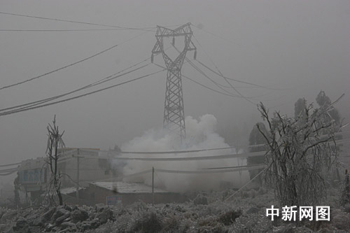 由于天氣持續(xù)惡劣,當(dāng)?shù)毓╇姴块T現(xiàn)加派人員,日夜巡查,一但發(fā)現(xiàn)有電線垂落,危及京珠北通車安全,馬上組織處理。這是首次在廣東京珠北韶關(guān)樂昌境內(nèi)路段采用炸倒電線鐵塔的方法來排除險(xiǎn)情。(完)