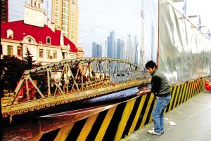 相關(guān)部門透露,設(shè)計壽命只有50年的外白渡橋,至今已超期服役50年。雖歷經(jīng)多次維修,但橋體已明顯老化,各部件處于疲勞期。去年7月啟動的外灘通道工程,將以盾構(gòu)推進的形式,在外白渡橋下掘出一根地下通道。兩相權(quán)衡,并經(jīng)過嚴密論證,相關(guān)部門做出了“移橋”的決定。