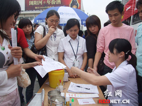 14日,長沙市黃興路步行街中心廣場,祈福、捐款、獻血等多種募捐活動從早到晚幾乎沒有間歇。長沙各大高校、企業(yè)紛紛發(fā)起為災(zāi)區(qū)獻血活動,獻血排出百米長隊 采血量是往日6倍。晚7時45分,來自可口可樂選拔出的6位火炬手手持“祥云”火炬與現(xiàn)場數(shù)百長沙市民一同在手腕上綁上黃絲帶、手拿一支獻花、捧起一支蠟燭,在廣場里許下心愿,祈求汶川地震的陰霾盡快散去。
