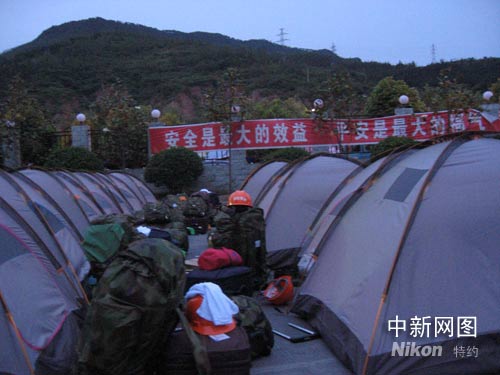 突擊隊(duì)連夜趕赴目的地廣元市,圖今天凌晨一點(diǎn)半突擊隊(duì)到達(dá)廣元,圖為突擊隊(duì)在野外露營(yíng)現(xiàn)場(chǎng)。