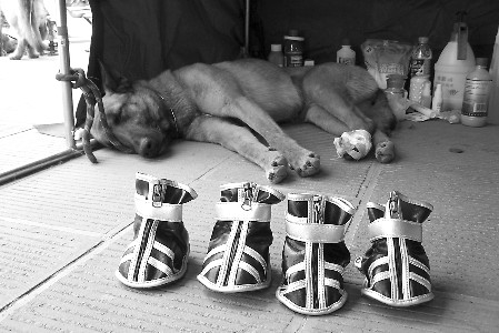 這7只搜救犬平均每天出動十余次,有時候晝夜作戰(zhàn),體力消耗嚴(yán)重,有的腿部被劃傷。幾天來,成都防疫站的工作人員定期為搜救犬查體,都江堰市的多家寵物醫(yī)院也主動為搜救犬提供藥品和進(jìn)行治療,同時,公安部有關(guān)部門專門為搜救犬配制了“犬鞋”,便于搜救犬在更復(fù)雜的廢墟環(huán)境下工作,避免遭受鋼筋和玻璃碴的傷害。