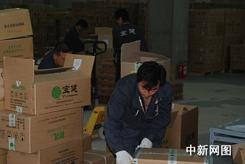 寶健工人正在裝運(yùn)救災(zāi)物資