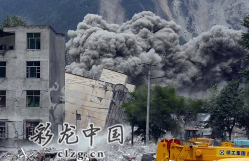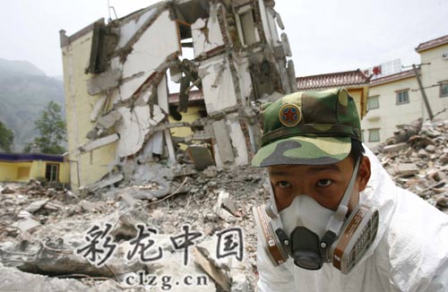 中午12時左右,在鎮(zhèn)中心附近,尖銳刺耳的哨聲,一聲驚天動地的巨響過后,巨大煙霧騰空而起——這是解放軍駐重慶某部隊對一棟居民樓進(jìn)行定向爆破,隨后,身著防化服的戰(zhàn)士進(jìn)入,進(jìn)行遺體清運和廢墟清理。連日來,解放軍戰(zhàn)士對全縣城的街道和土壤一直在進(jìn)行消毒,進(jìn)出車輛也要噴灑藥水,將發(fā)生疫情的可能性降到最低。