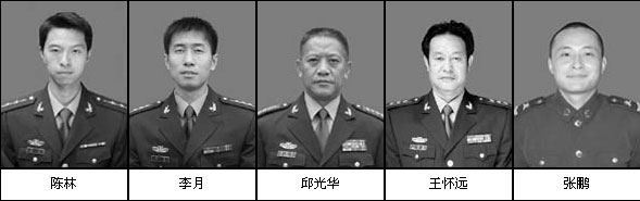失事機(jī)組成員5人:邱光華、李月、王懷遠(yuǎn)、陳林、張鵬。