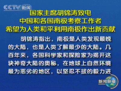 中新網(wǎng)6月21日電 據(jù)中央電視臺(tái)新聞聯(lián)播消息,6月21日是南半球的“冬至”,也是南極洲的重要傳統(tǒng)節(jié)日仲冬節(jié)。今天,中國國家主席胡錦濤發(fā)出慰問電,代表中國政府和中國人民,并以他個(gè)人名義,向在南極漫長極夜中勤奮工作、頑強(qiáng)拼搏的中國南極長城站、中山站的全體考察隊(duì)員,向奮斗在南極地區(qū)的各國科學(xué)家和工程技術(shù)人員致以誠摯的問候,祝他們仲冬節(jié)快樂。