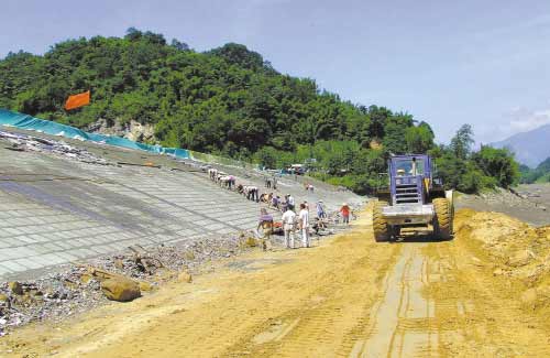 和其他同事一樣,彭州市水務(wù)局水利水保科副科長(zhǎng)寧順全每天都要到自己負(fù)責(zé)的水庫(kù)督促除險(xiǎn)工程的進(jìn)行。蓮花洞水庫(kù)屬中型水庫(kù),是此次成都市10座高危以上險(xiǎn)情水庫(kù)中最大的一座。經(jīng)專家實(shí)地勘查,該水庫(kù)溢洪道左側(cè)山體滑坡堵塞了部分泄洪通道,一些防浪墻倒塌,大壩頂有明顯震陷,防滲墻上方的壩面產(chǎn)生較大裂縫。