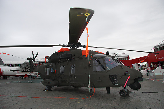純軍用型筆者在現(xiàn)場(chǎng)只看到了一架丹麥陸軍最新購買的EH-101 Mk512默林直升機(jī)。該機(jī)的機(jī)鼻向上方翹著,看起來很可愛。