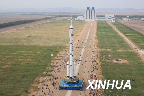 20日15時15分,當(dāng)神舟七號載人飛船、長征二號F運(yùn)載火箭和逃逸塔組合體,經(jīng)過一小時零五分的行駛,順利垂直轉(zhuǎn)運(yùn)至1500米之外的發(fā)射區(qū)時,現(xiàn)場人群中爆發(fā)出一陣歡呼。這標(biāo)志著神七任務(wù)已經(jīng)進(jìn)入最后的發(fā)射準(zhǔn)備階段。