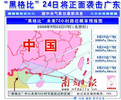 據(jù)氣象部門預(yù)測,今年第14號強(qiáng)臺風(fēng)“黑格比”將于明日凌晨至傍晚在珠江口以西我省沿海地區(qū)登陸,強(qiáng)臺風(fēng)中心風(fēng)力強(qiáng),移動速度快,影響范圍廣,我省中部和南部地區(qū)將有暴雨到大暴雨,局部地區(qū)可能有特大暴雨。22日20時,省防總根據(jù)強(qiáng)臺風(fēng)發(fā)展動態(tài),及時啟動了防風(fēng)Ⅱ級應(yīng)急響應(yīng),目前我省有關(guān)地區(qū)各項防御工作正緊張有序地開展。