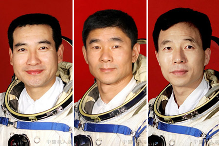中國“神舟七號”航天員乘組24日下午在酒泉衛(wèi)星中心與媒體見面。翟志剛、劉伯明、景海鵬(從左至右)組成飛行乘組執(zhí)行“神舟七號”載人航天飛行任務(wù)。(圖據(jù)中國載人航天工程網(wǎng))