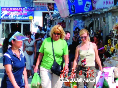 眼下,俄羅斯游客來撫遠(yuǎn)即時享受者居多。俄方規(guī)定每個俄國人回境不能帶超過35公斤的物品,為此,他們在撫遠(yuǎn)盡情即時享受中國菜、中國酒,回境時盡量把買的衣服套滿全身。