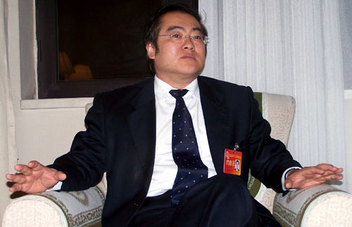 工會十五大代表、中華全國總工會民主管理部部長郭軍接受記者采訪。