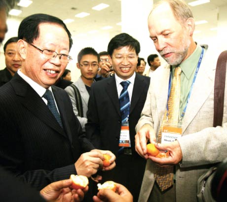 國際柑橘大會首次在漢召開,農(nóng)業(yè)部副部長現(xiàn)場推薦湖北柑橘,省農(nóng)業(yè)廳果品辦主任李傳友透露“不必驚慌,很多國家的不同地區(qū)都發(fā)生過蛆柑事件!弊蛉障挛,由國際柑橘學(xué)會主辦,中國柑橘學(xué)會和華中農(nóng)業(yè)大學(xué)承辦的第十一屆國際柑橘大會開幕,600余名來自世界各國的柑橘專家參加了會議。