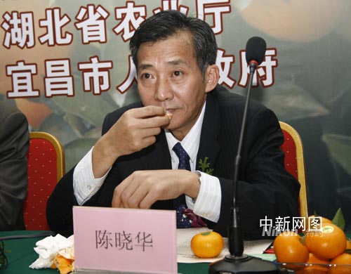 中新社武漢十一月一日電 (記者 徐金波)出席中國武漢農(nóng)業(yè)博覽會的國家農(nóng)業(yè)部副部長陳曉華一日甘當(dāng)柑橘“代言”人,除現(xiàn)場品嘗中國四大柑橘產(chǎn)地之一的宜昌柑橘外,還歷數(shù)其好,并對此前媒體特別是手機(jī)短信散布的“柑橘生蛆”不實(shí)信息予以駁斥。此舉大幅提升了市場消費(fèi)信心,當(dāng)日來自全國十多個省份的經(jīng)銷商與湖北宜昌市簽訂了二十三萬噸的銷售協(xié)議。