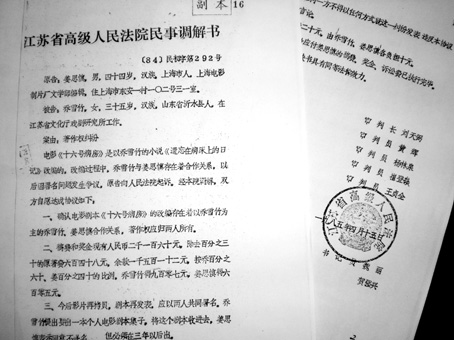 24年前,1984年4月,因?yàn)樽髌泛献鞫l(fā)的電影故事片《十六號病房》編劇署名之爭,在雙方“筆墨官司”糾纏了八九個(gè)月之后,上海電影制片廠文學(xué)部編輯姜思慎以侵犯著作權(quán)之訴,將小說《遺忘在病床上的日記》的原著作者喬雪竹告上了法庭。該案成為我國建國以來首例著作權(quán)糾紛案,一時(shí)引起了中外輿論的高度關(guān)注。
