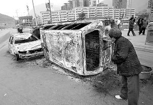 李學(xué)春說(shuō),目前,隴南市紀(jì)委、團(tuán)市委、市婦聯(lián)、市總工會(huì)、市信訪局、市檔案局等機(jī)關(guān)單位辦公設(shè)施及文件資料全部砸壞燒毀,已不具備辦公條件;市檔案局大部分檔案被燒毀;中樓職工宿舍全部被砸燒,私人財(cái)產(chǎn)損失嚴(yán)重;與此同時(shí),不法分子將停放在長(zhǎng)江大道的7輛警車(chē)砸毀并焚燒。