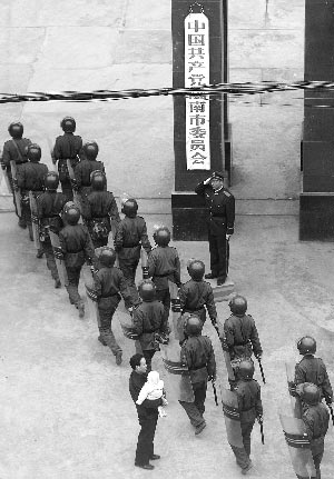 中午,省政府省長(zhǎng)助理、公安廳長(zhǎng)何挺同志趕到市委大院,對(duì)處置這起事件進(jìn)行了具體部署,公安民警、武警將聚集人員全部清理和疏散出市委大門(mén)。