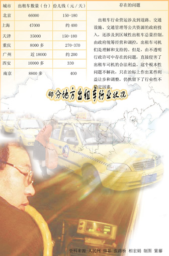 據(jù)記者了解,目前各地政府對出租車的投放模式有兩類:一是政府通過行政審批的方式控制出租車的總量;一是政府一次性拍賣出租車經(jīng)營權(quán)。第一種模式導(dǎo)致了出租車公司的中間盤剝,也就是出租車司機說的“份兒錢”;第二種模式產(chǎn)生的問題是,政府一次性拍賣了出租車經(jīng)營權(quán),斬斷中間盤剝鏈條,取消“份兒錢”,但是導(dǎo)致“出租車經(jīng)營權(quán)”的猖獗倒賣,比如,一些地方就出現(xiàn)了原來10萬元從政府處買來,卻60萬賣給其他人經(jīng)營的事情。